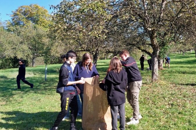 Wir, die Schülerinnen und Schüler der Klassen 7a und 7b, durften auf der schuleigenen Streuobstwiese wieder viele Erfahrungen sammeln.